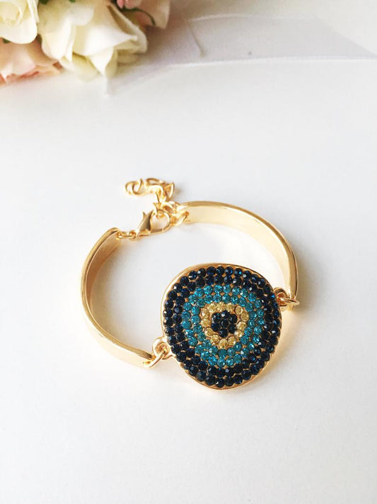 Evil Eye Bracelet, Gold Bangle Bracelet, Evil Eye Hamsa Jewelry