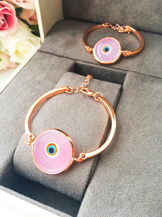 Murano Evil Eye Bracelet, Pink Murano Bracelet, Rose Gold Chain