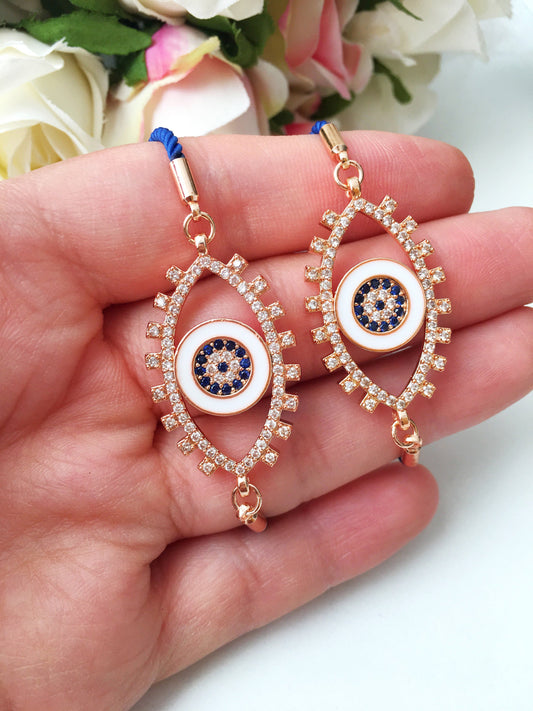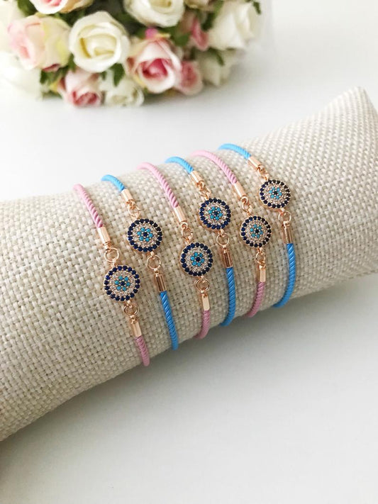 Evil Eye Bracelet, Zircon Evil Eye Bead, Adjustable Pink Blue String