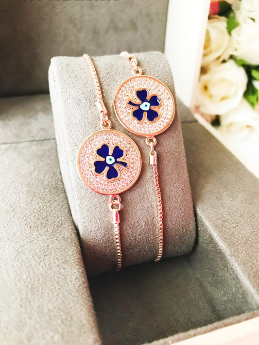 Evil Eye Bracelet, Four Leaf Clover Bracelet, Adjustable Good Luck