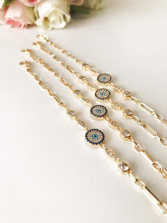 Evil Eye Bracelet, Zircon Charm Bracelet, Gold Chain Bracelet