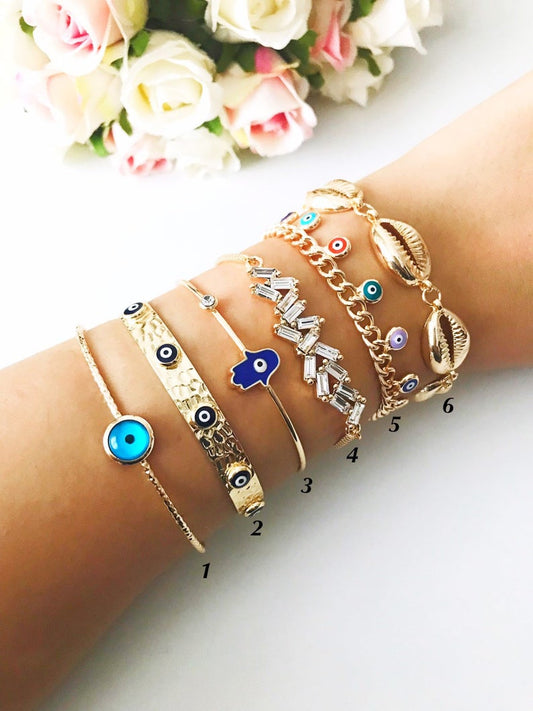 Blue Evil Eye Bracelet, Evil Eye Cuff Bracelet, Gold Bracelet