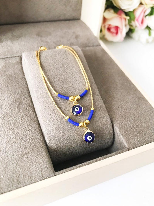 Greek Evil Eye Bracelet, Glass Blue Evil Eye Bead, Gold Chain Bracelet