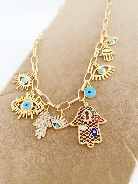 Gold Chain Necklace, Evil Eye Necklace, Chunky Chain Necklace, Hamsa