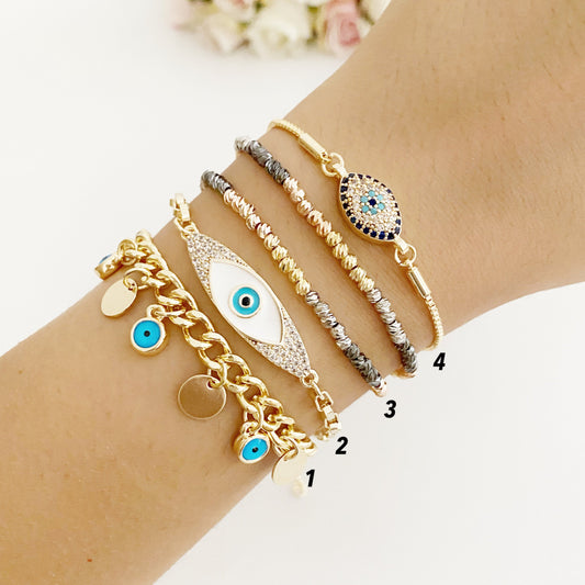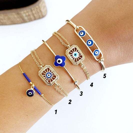 Evil Eye Bracelet Set, Adjustable Bracelet, Lucky Greek Evil Eye
