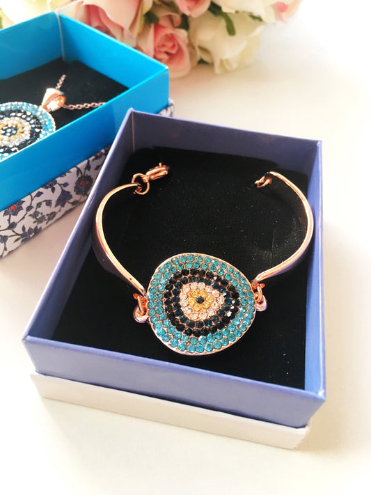 Evil Eye Jewelry Gift Set, Zircon Bracelet Necklace