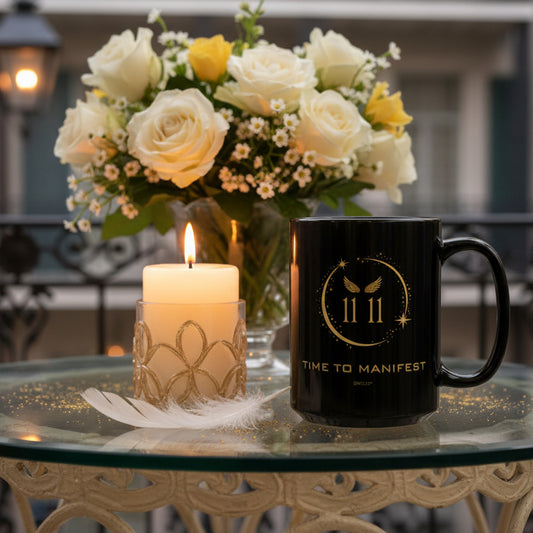 Angel 1111 'Time To Manifest' Affirmation DM1111 Black Mug (11oz, 15oz)
