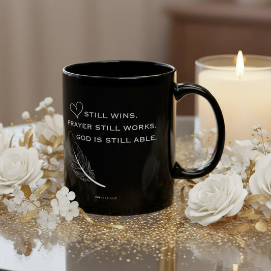 DM1111 "God Is Still Able" Black Mug (11oz, 15oz)